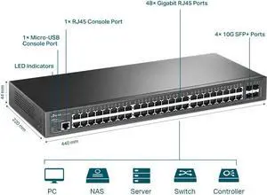 TP-Link TL-SG3452X | 48 Port Gigabit Switch, 4 x 10GE SFP+ Slots | L2+ Smart Managed | Omada SDN Integrated | IPv6 | Static Routing | Support QoS, IGMP & LAG | 5 Year Manufacturer Warranty