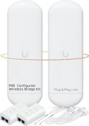 Wireless Bridge Ubiquiti NS-5AC PRE-CONFIGURED, Bundle of 2 Ubiquiti Nanostation NS5AC, Point to Point Outdoor WiFi Bridge, Plugh and Play, 5GHz, 450+Mbps, 15+km Link Range, Network Bridge
