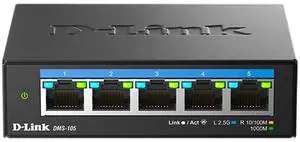 D-Link 5-Port 2.5Gb Unmanaged Gaming Switch with 5 x 2.5Gb - Multi-Gig, Network, Fanless, Plug & Play - (DMS-105)