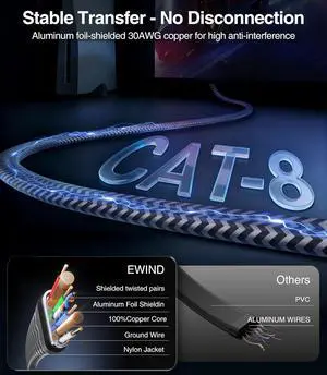 EWIND 2.5Gb Ethernet Switch & Cat 8 Ethernet Cable 6FT