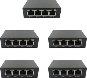 5X 1 Port POE Extender 10/100Mbps with IEEE 802.3Af Standard Input/Output for IP Camera Transmission Distance 120 Meters