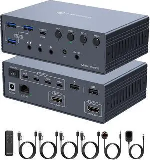 Double Monitor KVM Switcher USB C Dock Connecting 2 Laptops to 2 Screens 4 USB3.0 Port and 80W Fast Charging Switcher Double Monitor KVM Switcher USB C