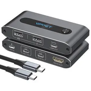 USB C KVM Switch 1 Monitor 2 Laptops 4K@60Hz HDMI KVM Switch 2 Computers Sharing 1 Monitor Keyboard Mouse 3 USB2.0 Port Support up to 100W Charging