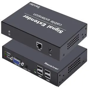 VGA KVM Extender Up to 164ft/50m Over Single Cat5e/6/7 Network KVM, 4 USB Over Ethernet, Plug and Play, 1080P@60Hz Video Extender