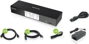 USB 3.0 HDMI KVM Switch 1 Monitors 4 Computers, 4K@60Hz KVM Switches for 4 Computers Sharing Monitor Keyboard Mouse Hard Drives Printer, with EDID Adaptive,1 HDMI Cable and 4 USB Cable