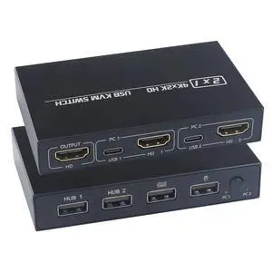 2 Port HDMI KVM Switch, 4K@30Hz USB KVM Switcher Box for 2 PC Sharing Keyboard Mouse Printer, 2 in 1 Out with USB Hub