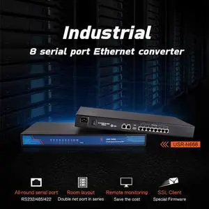 USR-N668 8 Ports Serial Ports Device RS232/RS485/RS422 Serial to Ethernet Converters Module Support TCP Server/UDP Client