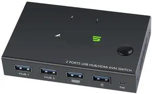 2 Port HDMI USB 3.0 KVM Switch with Aluminum Alloy Shell and Digital Display,Audio/Microphone, 4K@60Hz,hotkey,Auto EDID, HDR10 with Cables