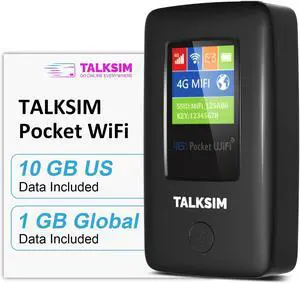4G Mobile Hotspot with US 10GB & Global 1GB Data, Portable WiFi Hotspot for Travel in 140+ Countries, Long-Lasting 6000mAh Battery, 10 Connected Devices, No SIM Required, No Contract