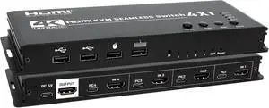 4K HDMI KVM Switch 4x1 Quad Multi Viewer 4 in 1 Out KVM HDMI Processor Screen Multiviewer Seamless for 4 PC Share Mouse Keyboard