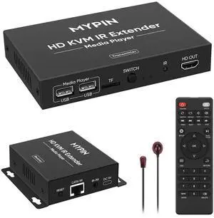 1080P HDMI KVM Extender Over Cat 6/7/8 Cable up to 492 ft, HD Digital Media Player for USB Drives,HDMI Extender with 3.5mm Audio & Loop Out, Supports IR Remote, Support for One to Many Connection