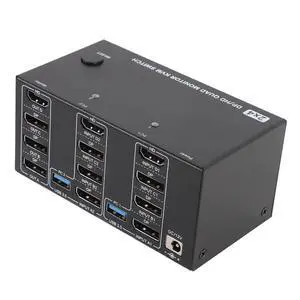 GOWENIC KVM Switch, 4 Monitors 2 Computers DisplayPort 8K 60Hz 4K 144Hz with 4 USB 3.0 Ports, for OS X OS Unix Computers (US)