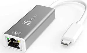 j5create USB-C to 2.5G Ethernet Adapter, RJ45 LAN 2.5 Gigabit Network to USB Type C/Thunderbolt Converter, Compatible for MacBook Pro/Air, Tablets, Dell XPS, Surface Pro 7 (JCE145)