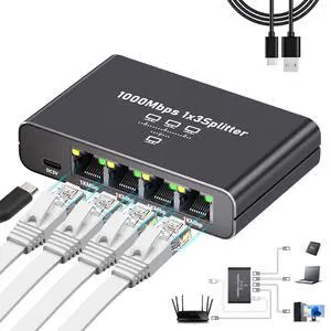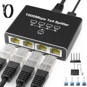KiWiBiRD Ethernet Splitter 1 to 2 Ethernet Cable Splitter Internet Switch 2 Port Network Gigabit LAN RJ45 1000Mbps 1 in 2 Out Compatible with Cat 8 7 6 5 5e, Router PC Laptop Printer PS5 PS4 TV Box- Brand: KiwiBird