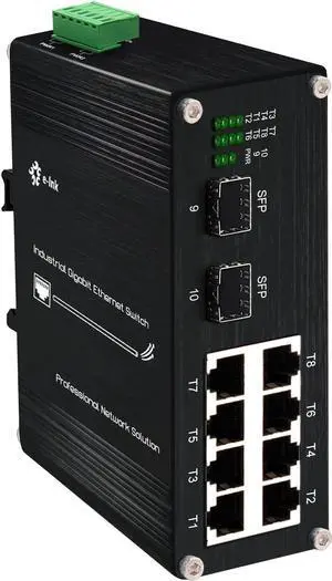 Industrial 8-Port Gigabit Ethernet Switch DIN Rail Mount - 10/100/1000Mbps Unmanaged With 2 SFP Fiber Ports