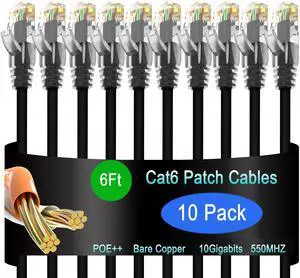 Cat6 Ethernet Patch Cable 6 ft (10 Pack), Cat6 Patch Cable for Data Centers, Cat 6 Patch Cable 10G, Network Patch Cables for Home and Enterprise Network -Black