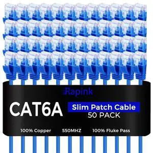Patch Cables Cat6a 3ft (50 Pack) Slim, Cat6a Ethernet Patch Cable 10G Support, Snagless Cat 6 Patch Cable for Patch Panel to Switch, Flexiable Cat 6a Ethernet Cable with Gold Plated