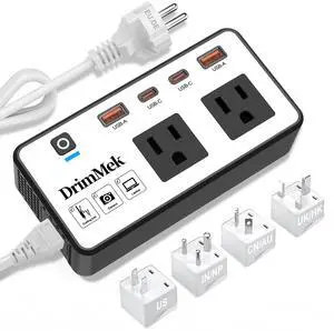 Universal Travel Adapter, Power Step Down 220V to 110V Voltage Converter with 6A 4-Port USB Charging 3 AC Sockets International Plug Adapter for UK/AU/US/EU/Japan More Than 150 Countries