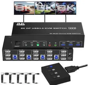 Displayport Switch 8K, Directional DP to DP+HDMI Switch 8K @ 30Hz, 4K @ 120Hz, Displayport Switcher 1 to 2 Out with LED Indicator for PC Host Monitor etc