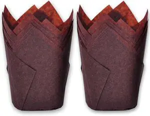 500 pcs Large size Brown Tulip Baking Cups 2-1/4"(Base diameter) x 4"(Wall height) Greaseproof paper baking cupcake Muffin liners