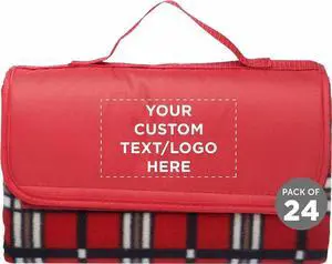 Custom Brookhaven Roll Up Picnic Blankets Set of 24, Personalized Bulk Pack - Great Outdoor Blanket for Camping, Picnic, Beach, Sports, Outdoor Activities - Red