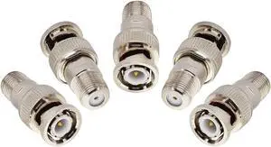 BOOBRIE BNC Male Plug to F Female Jack Adapter Coax Connector Coupler Adapters use for CCTV Camera Gender Changer Convertor Cable Lead Wire Joiner TV PAL Socket Adapter (5 Pack)