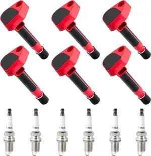 UF242 Ignition Coils and Iridium Spark Plug Set Fit for Honda Accord Odyssey, Acura TL CL RL 3.0L 3.2L 3.5L V6 (Pack of 6PCS)