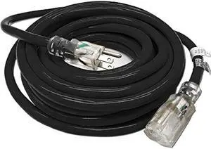25 ft - 12 Gauge Heavy Duty Lighted SJTW Indoor/Outdoor Black Extension Cord by Watt's Wire - 25' 12-Gauge Grounded 15-Amp Power-Cord (25 Foot 12-Awg Black)