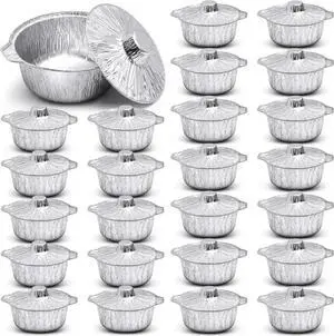 24 Pcs Disposable Aluminum Pot with Lid Round Foil Pans Disposable Cookware Food Container for Vacation Trips Camping Baking Heating Cooking (74.4 oz)