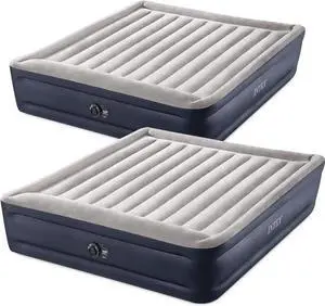 2 Pack Dura Beam Plus Deluxe Airbed, Inflatable Blow Up Portable Air Mattress with Built-in Internal Air Pump, King-Sized Bed