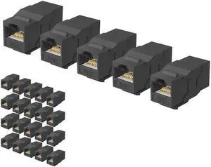 CAT6 RJ45 Keystone Couplers (UL Listed), 25-Pack Ethernet Keystone Jack Female to Female UTP for Cat6/Cat5e/Cat5 Network Cable, Black