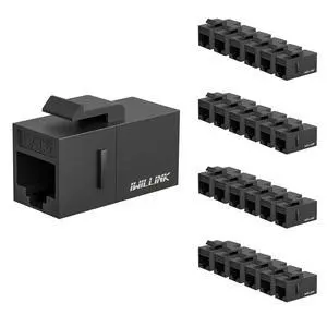 RJ45 Cat6 Keystone Coupler 25-Pack, Female to Female Cat6 Keystone Jack, UTP Keystone Coupler Insert, Keystone Jack, Ethernet Coupler, Black