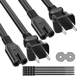 2 Prong Power Cord 4 FT (2-Pack), Non-Polarized AC Power Replacement Supply Cable, 7A, 125V, ETL Compatible with TV, Xbox, Laptop, Printer, C7 to 1-15P, with 25 TiesLimited time offer, ends 04/04