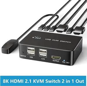 Video Resolution: Dual monitors kvm switcher,HDMI 2.1 port supports up to 8K@60Hz and 4K@240Hz(DSC), 4K@60/120/144Hz, 2K@120/240Hz,1080P@60/120/240Hz or lower resolutions for an incredible viewing experience with life like images and vibrant colors. Note: If you need to output 8K@60Hz or 4K@240Hz resolution, please make sure your HDMI cable, computer and monitor all support 8K@60Hz or 4K@240Hz.