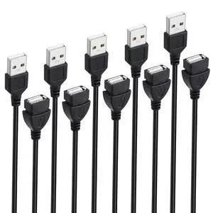 USB Extension Cable 6 ft 5-Pack USB-A 2.0 Male to Female Extender Cord Lot