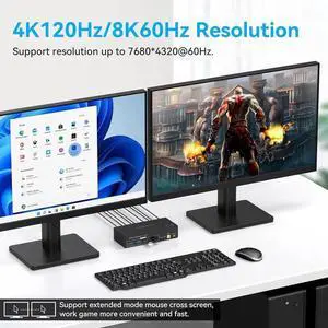 8K@60Hz HDMI Dual Monitor KVM Switch 2 Monitors 2 Computers 4K@120Hz, USB 3.0 Extended Display KVM switcher with 4 USB 3.0 Ports, HDMI KVM Switch Wired Controller 12V DC Adapter 2 USB Cables Included