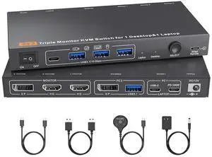 Video Resolution: 3 Monitors KVM Switch Displayport: support resolution up to 8K@30Hz /4K@144Hz, HDMI: support resolution up to 8K@60Hz/4K@120Hz and backward compatible with lower resolution.