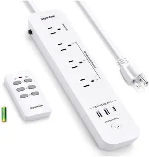 Remote Control Power Strip with 3 USB Surge Protector Power Strip with 3 RF Controlled Outlets, 5ft Extension Cord, 15A/1875W Remote Control Outlet for Household and Workstation Appliances