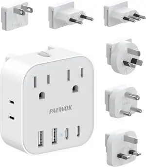 TESSAN Universal Travel Adapter, International Power Adapter 5.6A 28W 3 USB C 2 USB A Ports, Travel Worldwide Plug Adaptor, Outlet Wall Charger for Europe UK EU AUS (Type C/G/A/I)