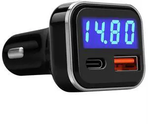 USB C Car Charger Adapter with Voltage Meter Battery Monitor, 30W Cigarette Lighter Type C Fast Charge Power Delivery & Quick Charge 3.0 with LED Display Compatible With iPhone 15 Galaxy S23