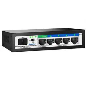 Easy Smart Managed PoE Switch 5 Port Gigabit and SFP Slot, with 4 Gigabit Port PoE+@52W, Fanless&Metal Design, Plug & Play, VLAN Mode, Overload Protection