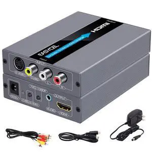 RCA Svideo to HDMI Converter with AV + S-Video Cables, RCA Composite CVBS AV or Svideo + R/L Audio Input to HDTV Output Upscale Converter