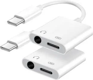 USB C to 3.5mm Headphone Jack and Charger Adapter 2-in-1 Audio & Fast Charging Splitter for iPhone 17/16/15/Pro/Pro Max iPad Pixel and More 2Pack