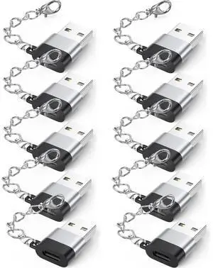 DteeDck USB C Female to USB Male Adapter 10 Pack with Keychain, 18W Charging & 480Mbps Data Transfer Sync Converter, USBC Type C Connector for Laptop Car Charger Headphone Computer Hub and More