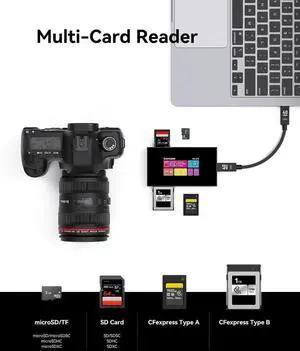 Smart 8-in-1 CFexpress Type B/Type A Card Reader with Touch Screen | UHS-II SD/microSD Slots, 4K HDMI, USB-C & USB-A 3.2 Gen 2 (10Gbps), 100W PD for Filmmakers, Pgraphers & Creators