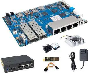 Banana Pi BPI-R4 WiFi 7 Wireless Dual-Band WiFi Router Board OpenWRT, with MediaTek MT7988A (Filogic 880) SoC, Support 2X 10GbE SFP and 4X GbE Gigabit Ethernet for NAS Smart Home Gateway (Bundle2)
