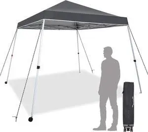 10x10 Ft Pop Up Canopy Tent One Button Easy Pop Up Outdoor Instant Folding Slant Leg Canopy with 2 Wheels and Deluxe Carry Bag(Dark Grey)