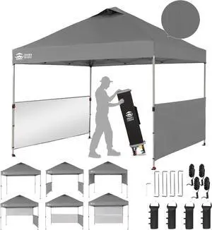 10x10 Pop up Canopy Tent Instant Canopy with 150D Silver Coated Fabric Including 2 Half Sidewalls, 4 Ropes, 8 Stakes, 4 Weight Bags, STO 'N Go Bag, Grid Grey