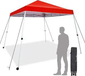 10x10 Ft Pop Up Canopy Tent One Button Easy Pop Up Outdoor Instant Folding Slant Leg Canopy with 2 Wheels and Deluxe Carry Bag(Red)