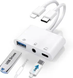 USB C & Lighting to 3.5mm Headphone Adapter 3-in-1 USB OTG Camera Adapter & Aux Headphone Splitter Supports Charging/Audio/Data Transfer for iPhone 17/16/15/14/13/12 Galaxy S25/24 Laptops